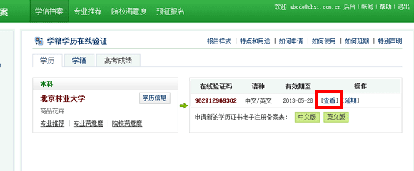 [page]第八步,查看网页版的学历证书电子注册备案表。
