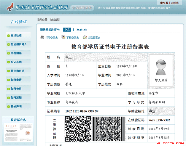 第八步,点击“English”查看英文版学历证书电子注册备案表。