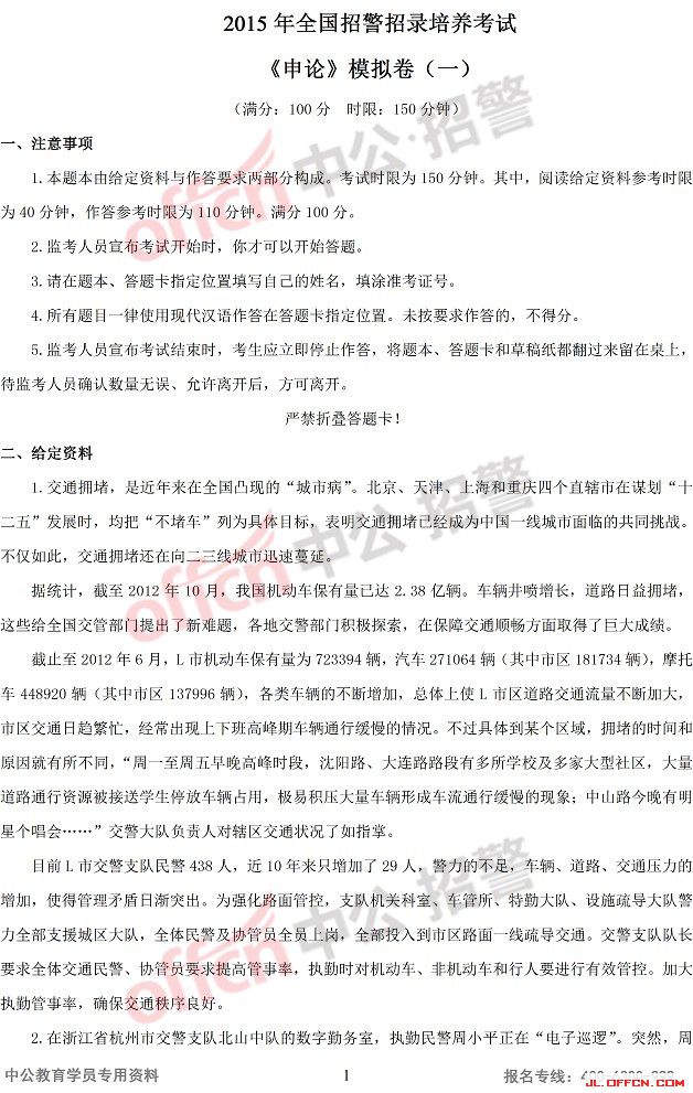 2015年吉林招警考试《申论》模拟卷(一)