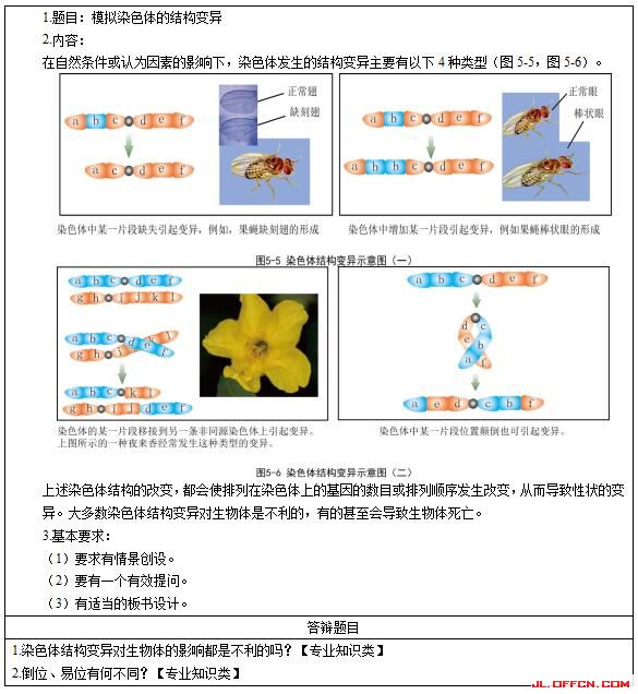组织学生回顾所学知识,思考回答相关问题,推测基因的载体能否发生变异?从而引入染色体结构的变异。