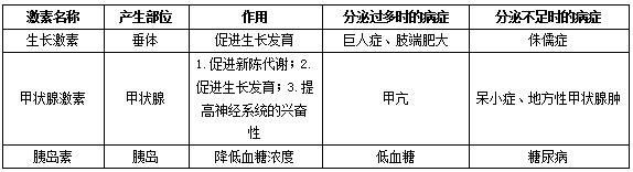 引导学生列表总结,比较三种激素的产生部位,作用及异常病症。