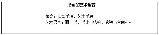 学生自学课本,教师总结:绘画有自身的符号性语言,它诉诸于视觉,起到达意表情的作用,它是指艺术家为形象地揭示绘画的内容而使用的造型表现手段和艺术手法的总和。