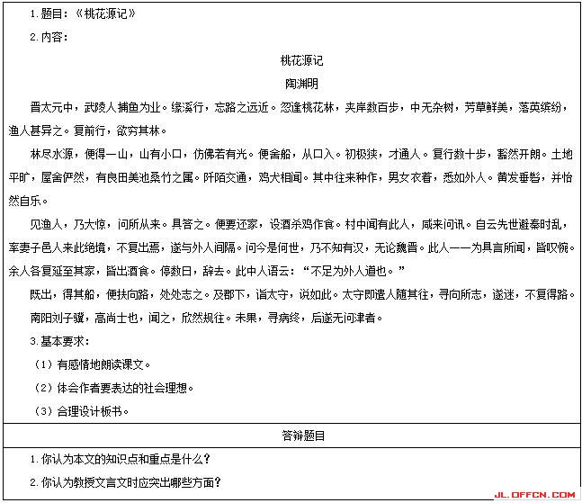 《桃花源记》是一篇文言文,正确理解文言文的意思就是第一步要做的,其次就是要将文言文中的实词、虚词、句式讲解清楚。关于重点,文言文的教学往往会流于串讲文言知识,这是不可取的,我们更应该关注文本所反映的内容。比如《桃花源记》当中包含了陶渊明对于美好生活的追求,也蕴含着老子的自然观,所以在教学中应该不断地激发学生对文章内容和情感的挖掘,提升学生的语文素养。