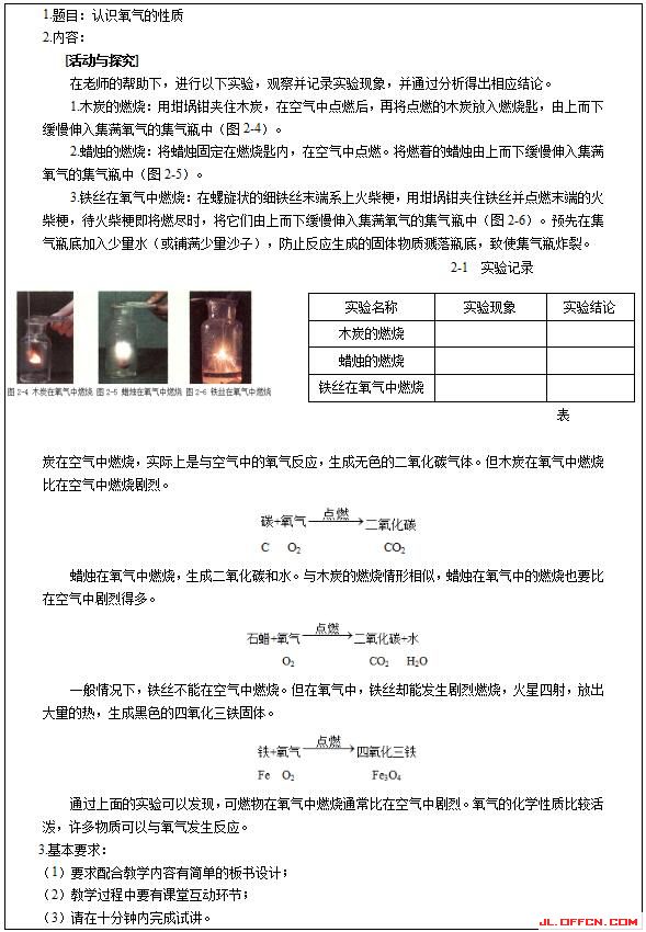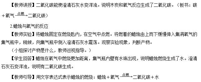 初中化学《认识氧气的性质》主要教学过程及板书设计