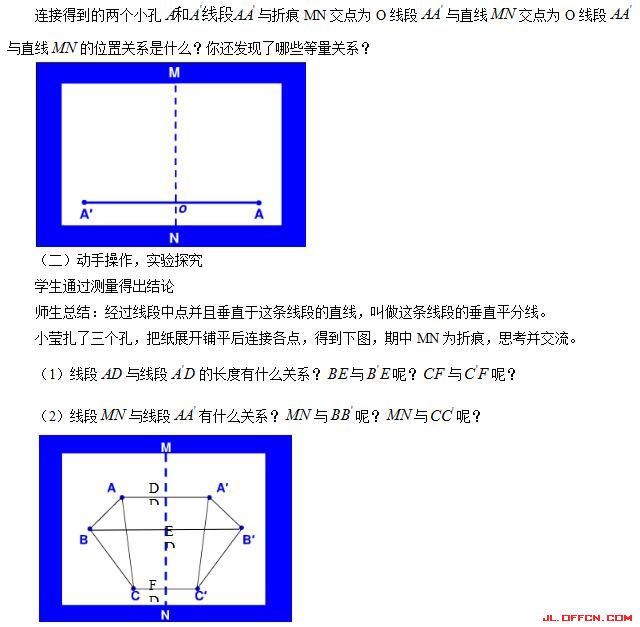 师生总结:如果两个图形关于某条直线对称,那么对称轴是任何一对对应点所连线段的垂直平分线。类似的,轴对称图形的对称轴,是任何一对对应点所连线段的垂直平分线。