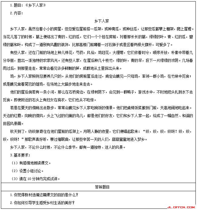 (生交流过程中,师适时点拨,提示学生抓住重点词句来体会乡下人家“独特”“迷人”之美,并相机指导学生有感情地朗读课文,其他学生通过“评读”的方式来参与学习。)