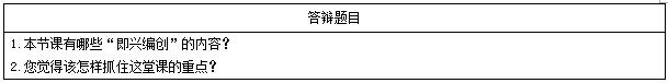 即兴编创关键在于即兴,在具体的教学活动中,教师不必过分拘泥于形式和结果,主要目标应放在培养和锻炼学生的创造意识方面。