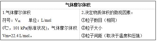 0℃,101 kPa(标准状况),l mol任何气体的体积都约为22.4 L。即此时,气体摩尔体积Vm=22.4 L。