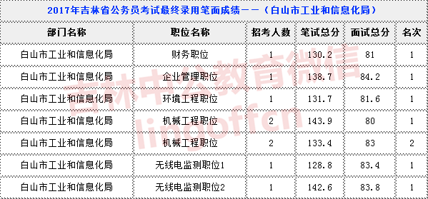 2017年吉林省公务员考试最终录用笔面成绩——(白山市工业和信息化局)