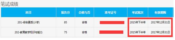 附:教师资格证笔试成绩有效期样例