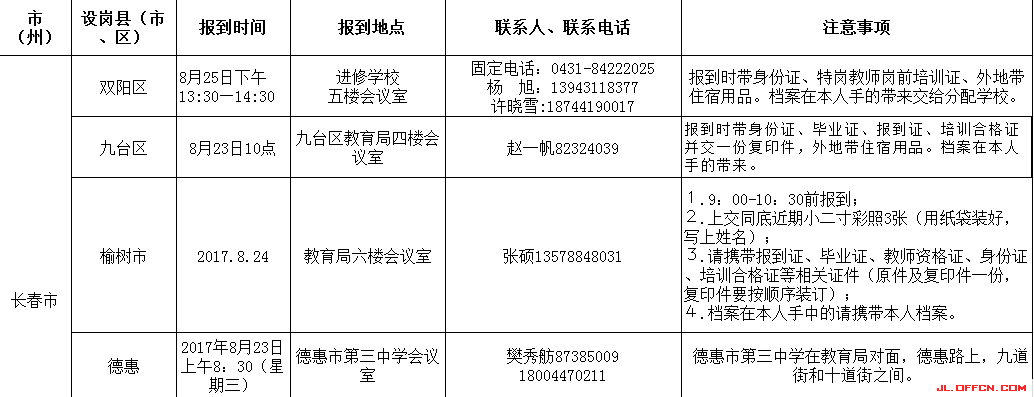 按照工作安排,2017年拟聘特岗教师需要在秋季新学期开学前到各设岗县(市、区)报到,完成签约上岗。请所有人员遵循各地报到工作要求,务必保证按时报到,不得延误。