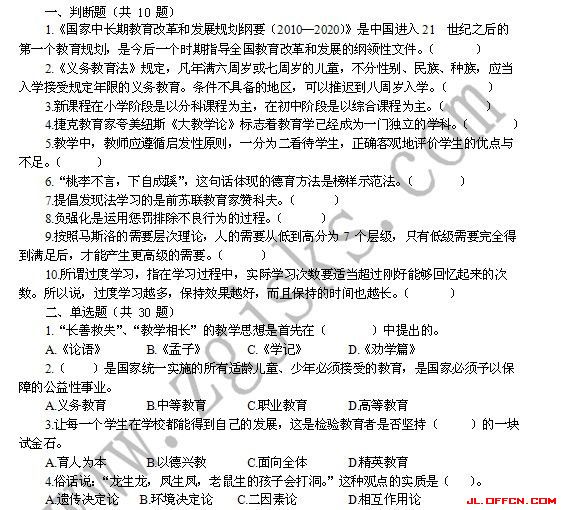 2013年吉林省特岗教师公开招聘考试模拟卷-《教育基础知识》