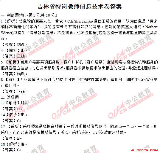 2014年吉林特岗教师计算机学科专业知识真题答案