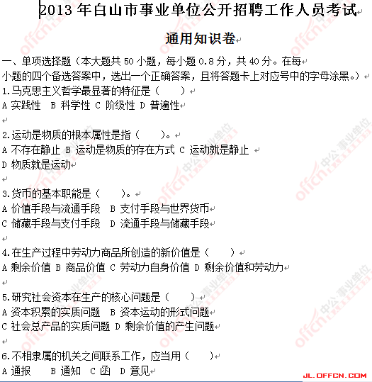 2013白山事业单位考试《通用知识》真题及解析