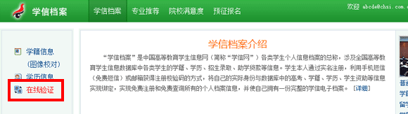 第三步,登录后,点击左侧菜单中的“在线验证”进入在线验证栏目。