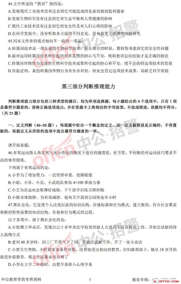 2016吉林招警考试行测模拟冲刺练习三(判断推理)