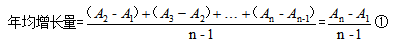 年均增长量指一段时间内某一数据指标平均每年增长的数量。如某指标第1年的值为A1,第2年的值为A2,……,第n年的值为An,则