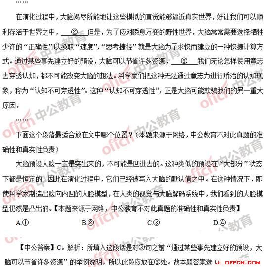 2002年、2003年言语理解考查文章阅读,但2003年之后此题型退出考查舞台,2017年再现试卷中,这着实给考生一个不小的“惊喜”。文章阅读共考查2篇,每篇5题,考查文体包括社会科学文和科普说明文。考查题型包括:语句衔接题、语段衔接题、细节判断题、细节查找题、主旨观点题。相较去年,文章阅读虽是新出现的题型,但大部分题目的考查内容在片段阅读和语句表达中也会出现,其中的语段衔接题虽在公务员考试中很少出现,但其考查内容和语句衔接相差不大,所以只要备考过,在考场上也能从容应对。