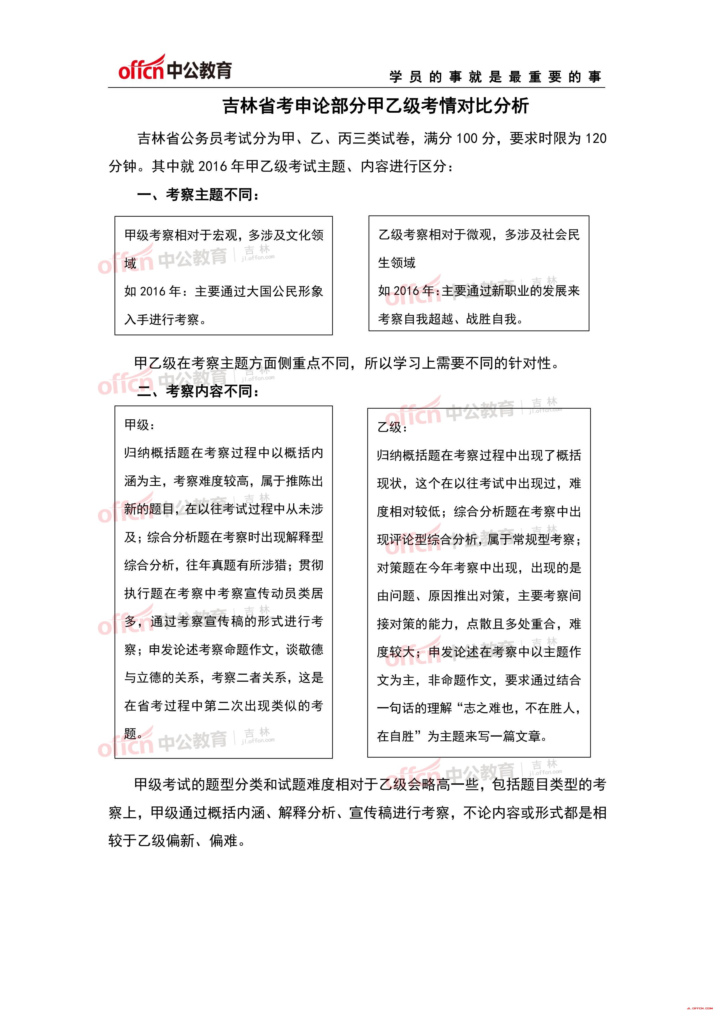吉林省公务员考试甲级乙级考情对比分析(申论)