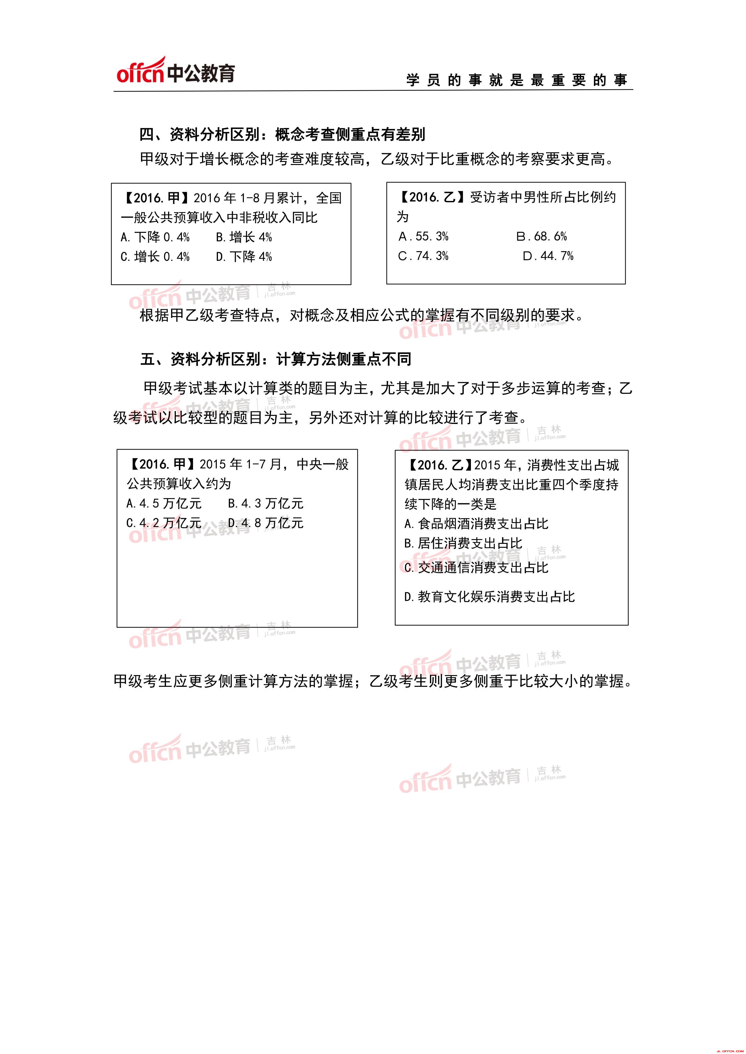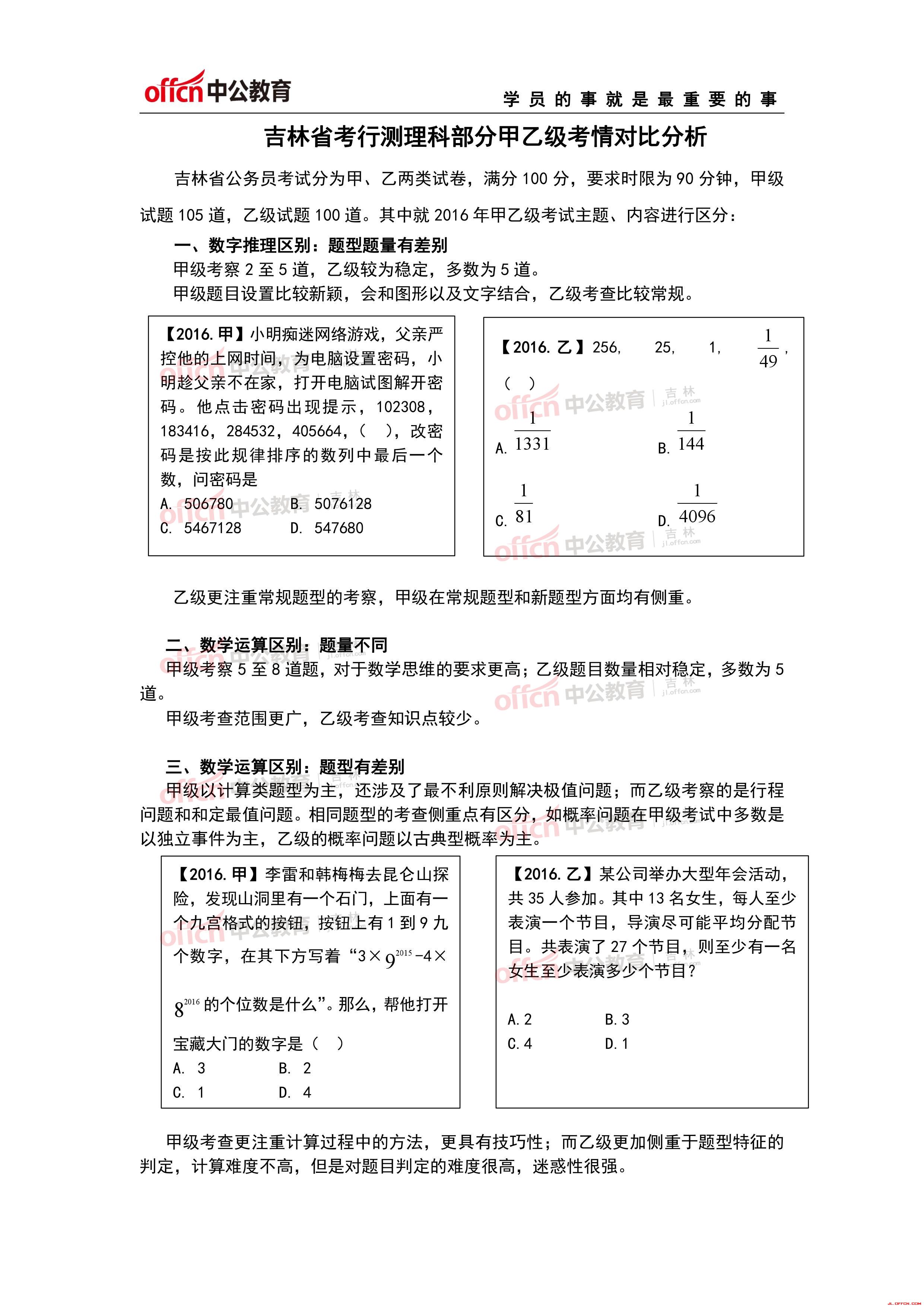 吉林省公务员考试甲级乙级考情对比分析(行测)