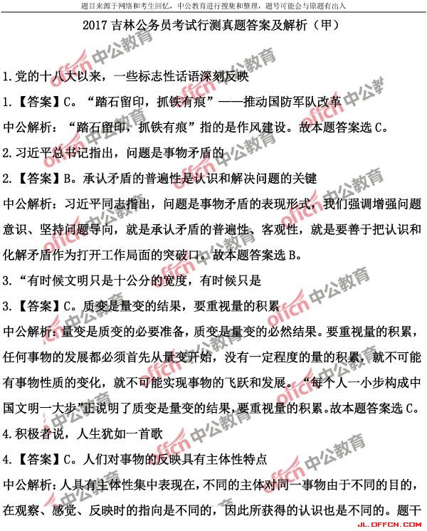 2017吉林公务员(选调生)考试行测真题答案及解析