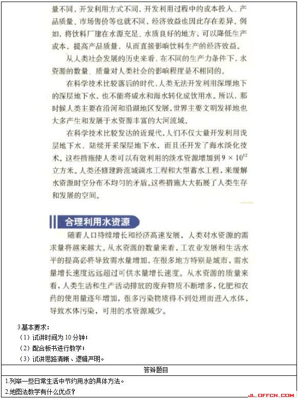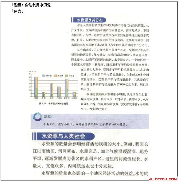 高中地理《合理利用水资源》主要教学过程及板书设计
