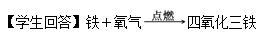 【教师引导】生成的黑色固体是四氧化三铁,并且反应会放出大量的热。对比前两个实验写出文字表达式?