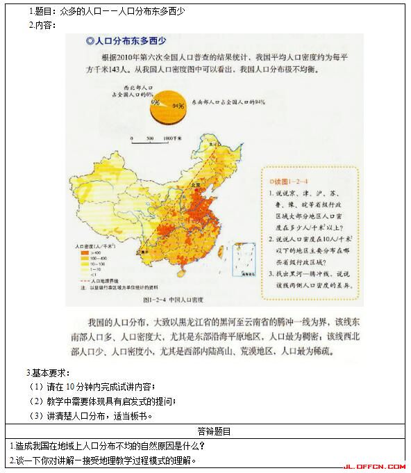 初中地理《众多的人口——人口分布东多西少》