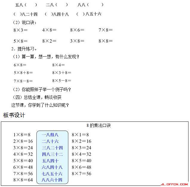 小学数学《8的乘法口诀》主要教学过程及板书设计