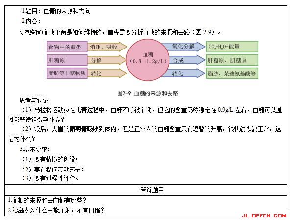 提出问题:机体调节血糖的来源和去向有哪些呢?顺势板书课题。