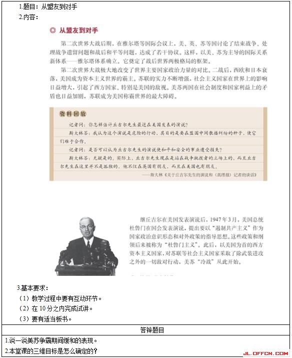 高中历史《从盟友到对手》