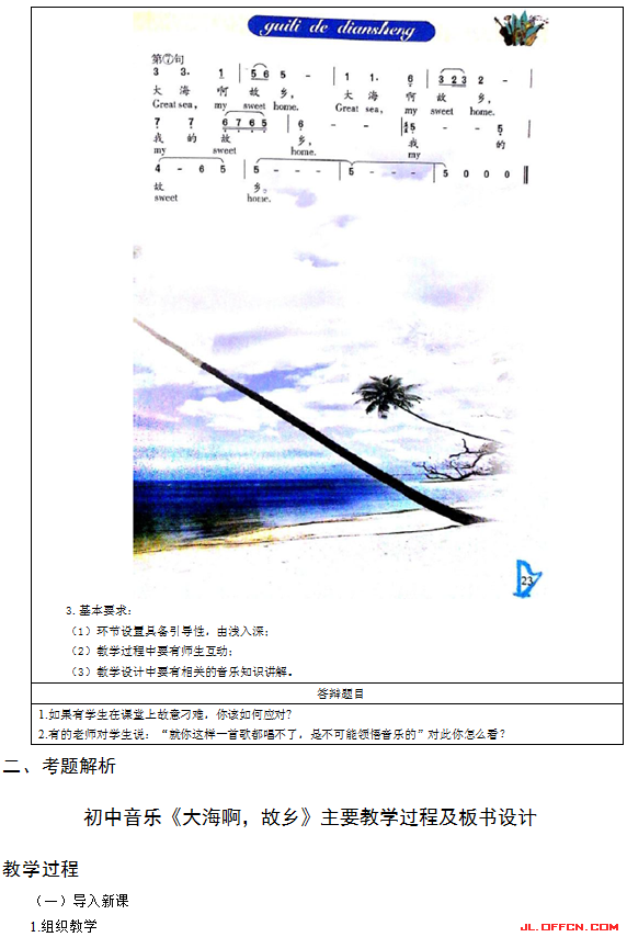 2017上半年白山初中音乐教师资格证面试真题(精选)第二批