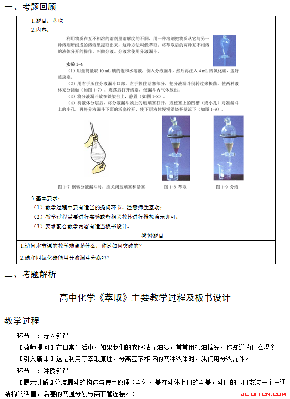 2017上半年白山高中化学教师资格证面试真题(精选)