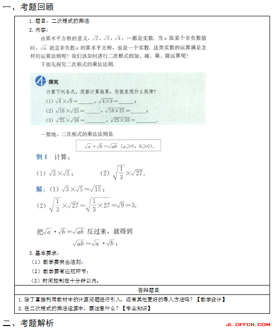 2017上半年白山初中数学教师资格证面试真题(精选)