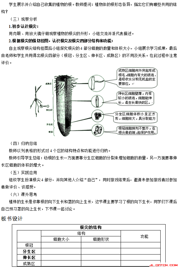 【过程与方法目标】通过对根和根尖挂图的观察,提高观察能力。