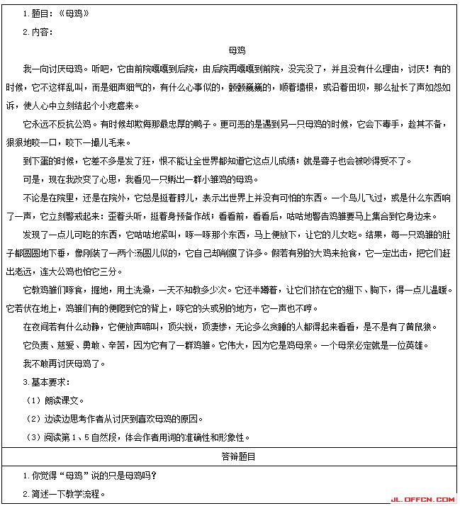 接下来,我们去看看本文的作者老舍他是喜欢还是讨厌母鸡呢?