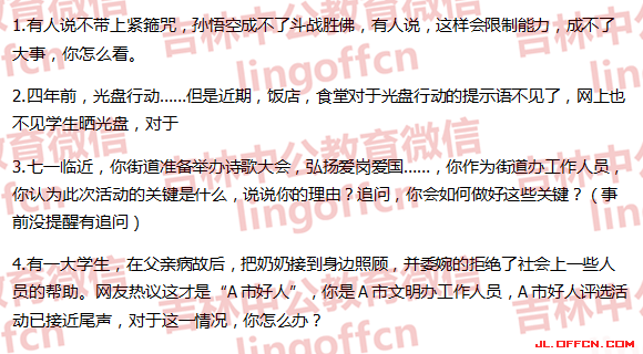 2017年吉林公务员面试正在进行中,望各位考生合理备考面试成功。下面是6月10日2017吉林公务员结构化面试真题,仅供大家参考。