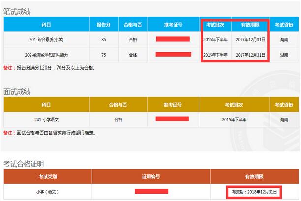 附:教师资格证笔试成绩有效期样例