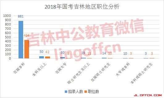 根据中公教育专家分析,2017年国家公务员考试吉林省总计招考职位511个,招考人数1007人。仅限本科可报职位的招考人数为881人,占总人数的87.48%;本科及以上可报职位的招考人数为50人,占总人数的4.97%。本次考试对专业门槛要求为“硕士研究生及以上”、“仅限硕士研究生”、“本科或硕士研究生”的职位共24个,招录人数36人,占总招录人数的3.57%。