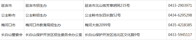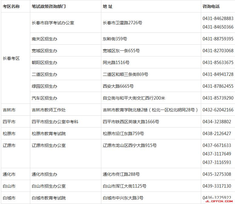 2018年吉林省中小学教师资格考试笔试考区联络表